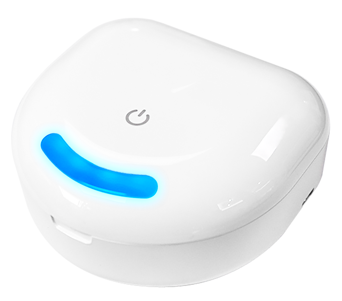 - 放入口腔護具並蓋上蓋子,按住觸摸開關2秒,藍燈亮,UVC燈開始殺菌,150秒後自動關閉。