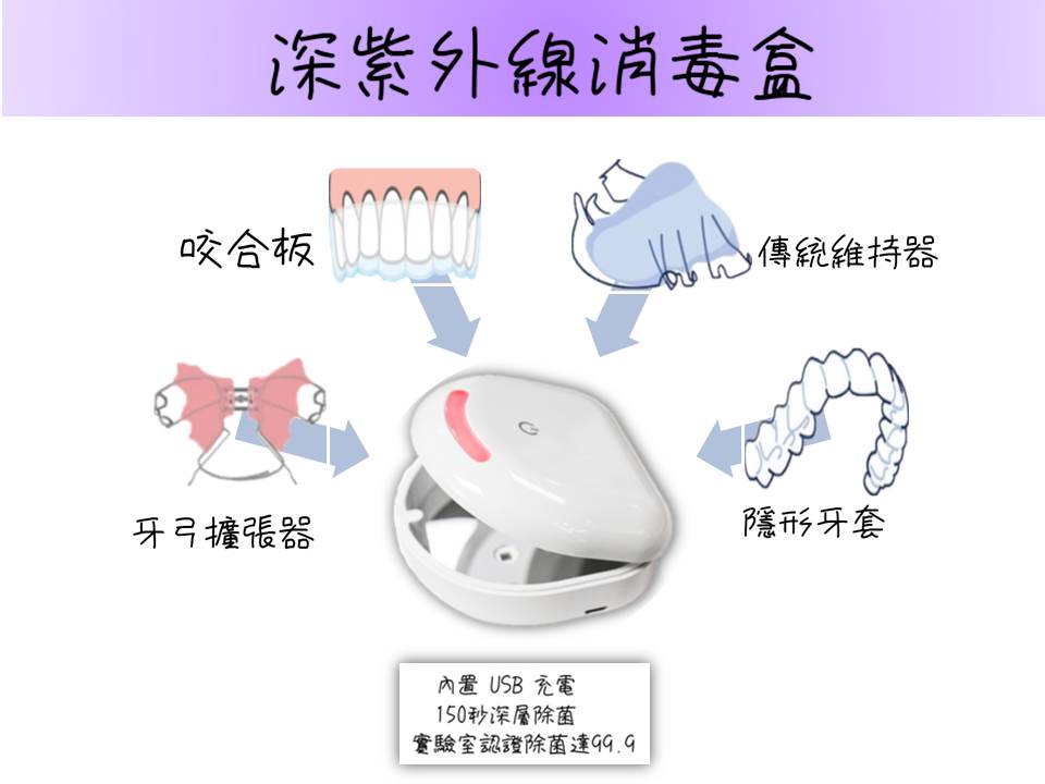 - 專為隱形牙套、維持器、活動假牙等個人口腔護具消毒而設計,外形美觀,攜帶方便。